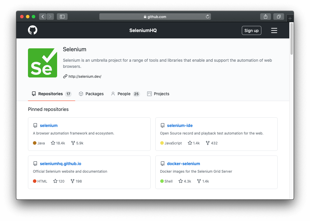 all the major repositories under the SeleniumHQ GitHub